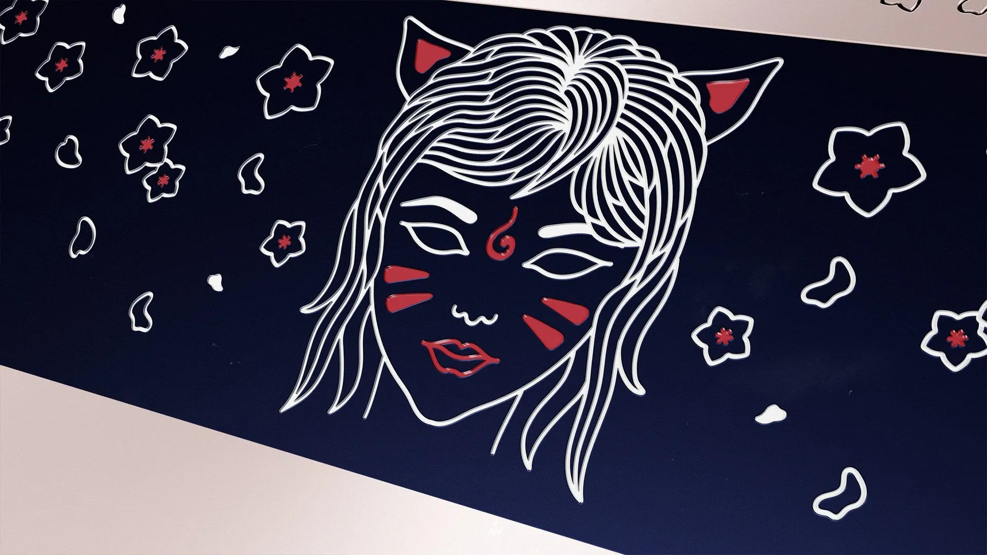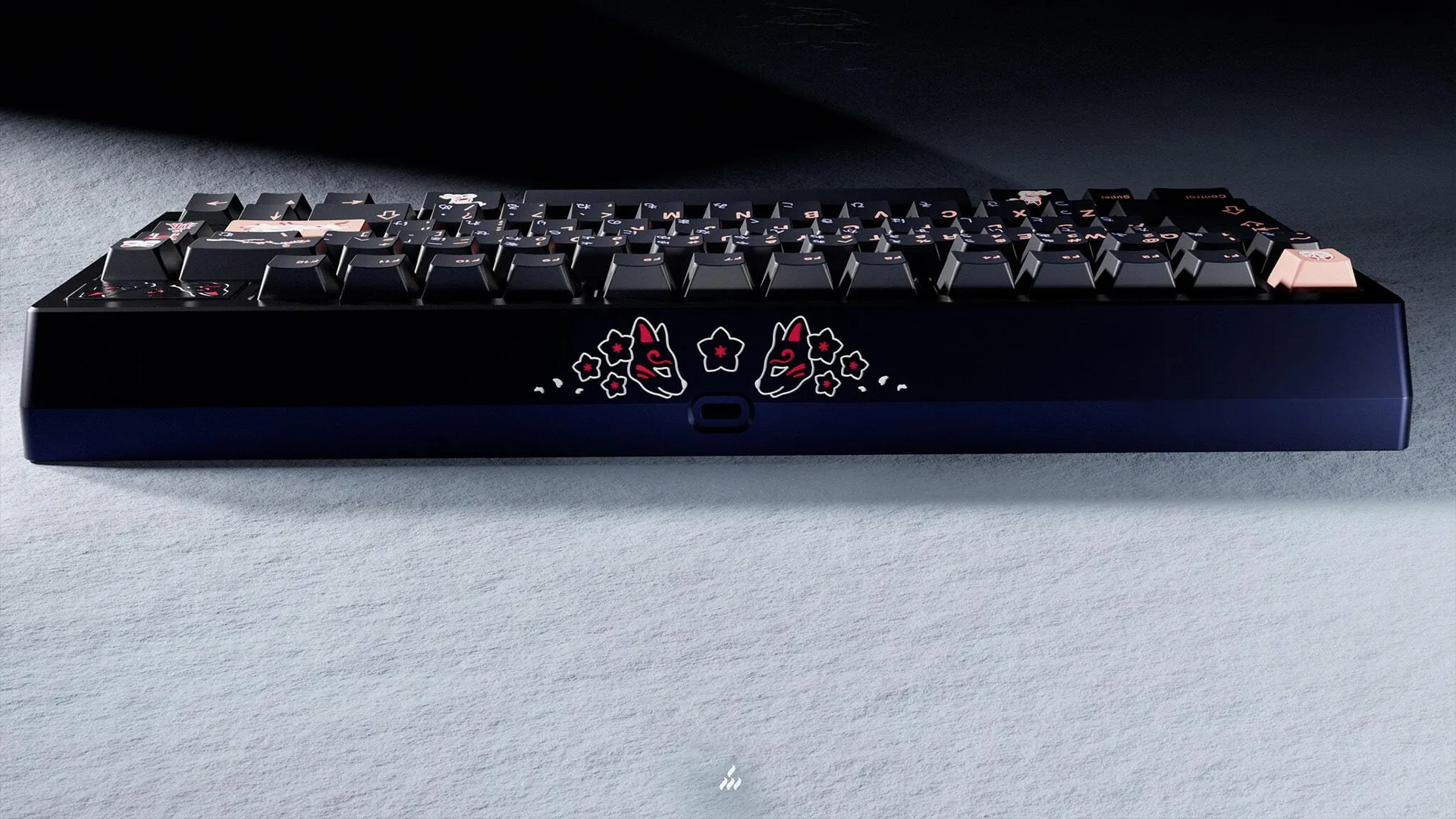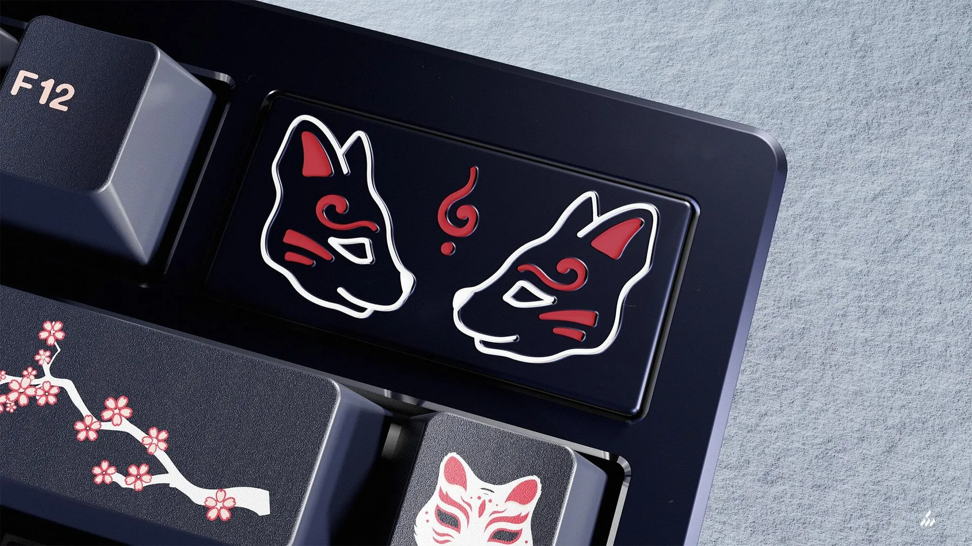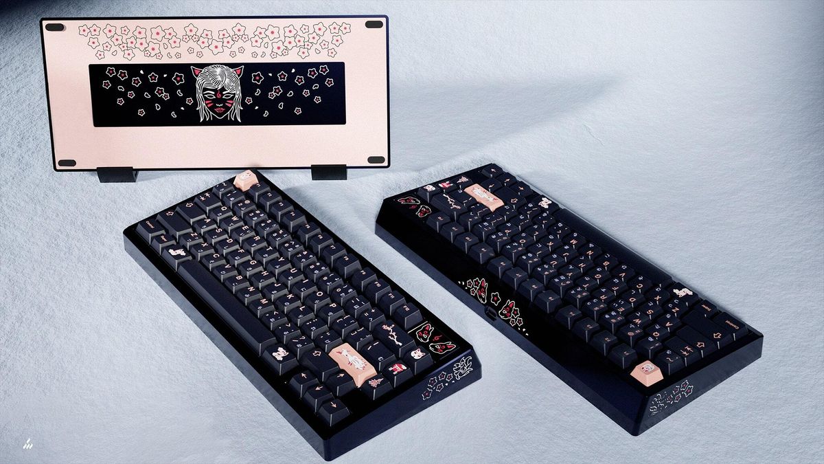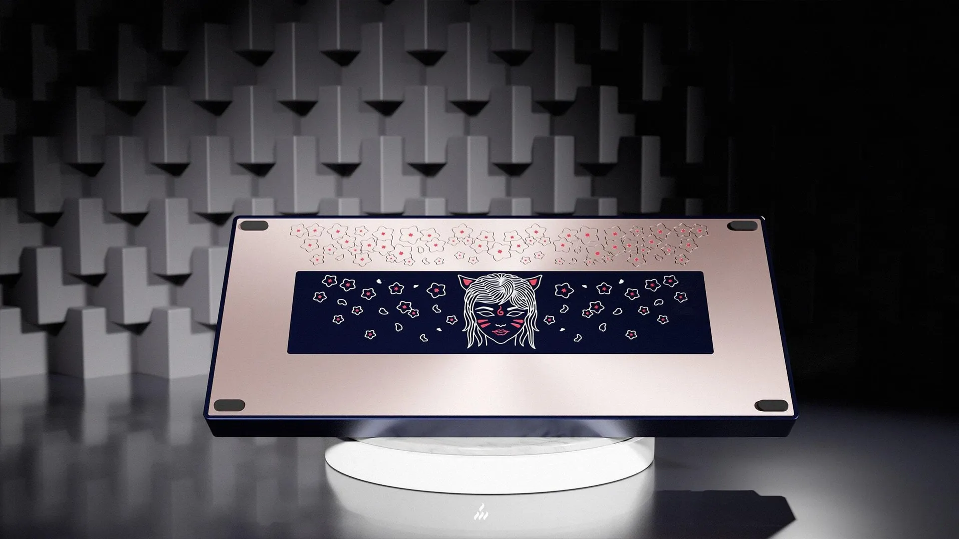 Корпус из анодированного алюминия надолго сохранит свой безупречный внешний вид, а его вес не даст клавиатуре сдвинуться с места. Украшен рисунками цветов сакуры и кицунэ.