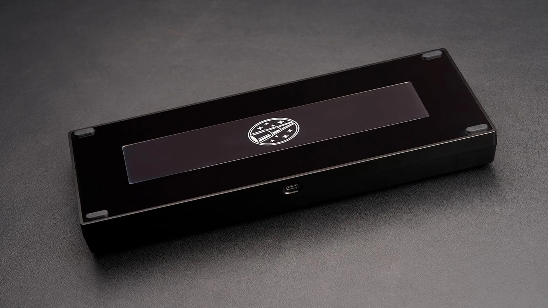 У базы предустановлен модуль с энкодером и дополнительной клавишей, который можно заменить на ЖК-мониторчик, две клавиши 1U или бейдж.