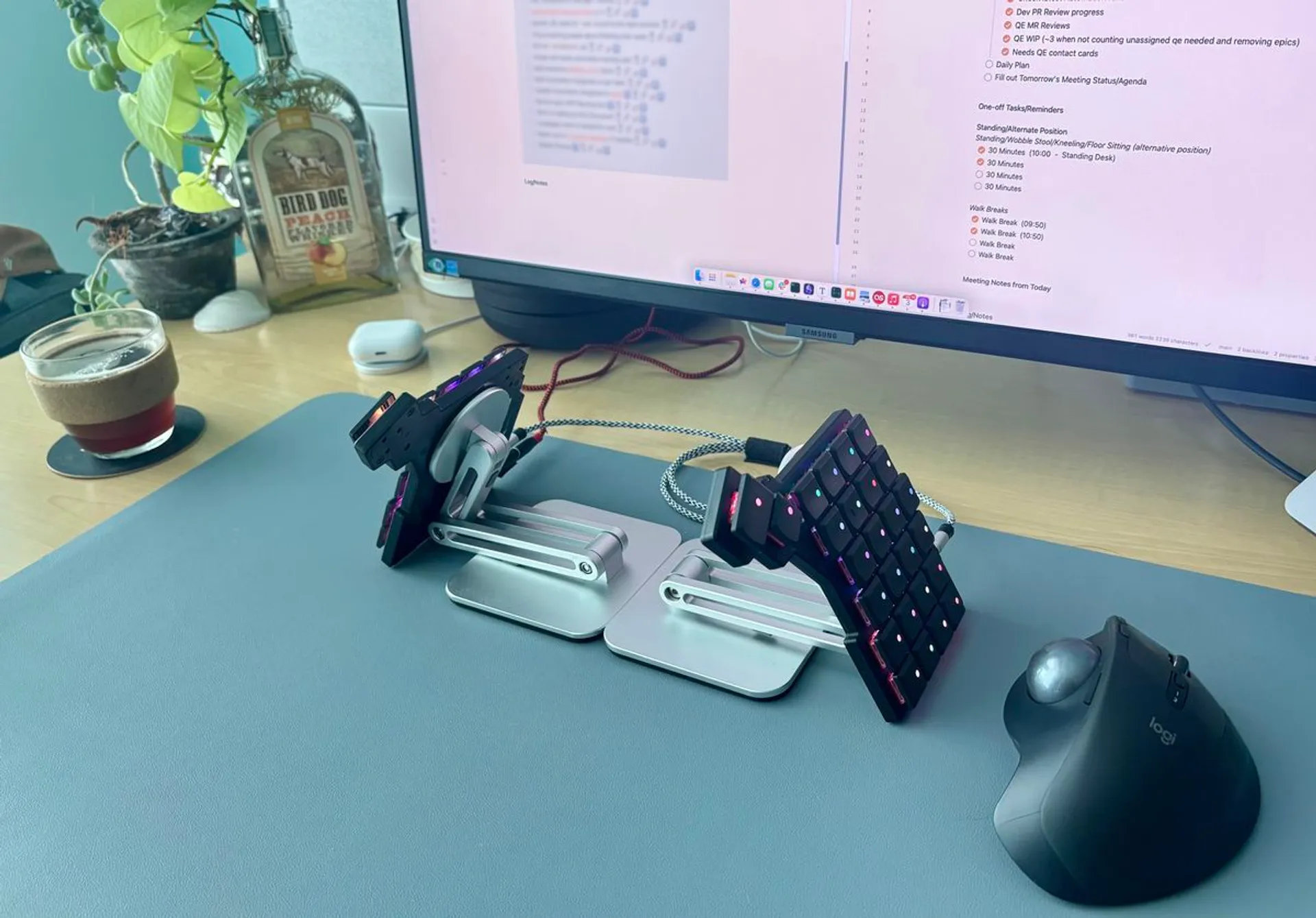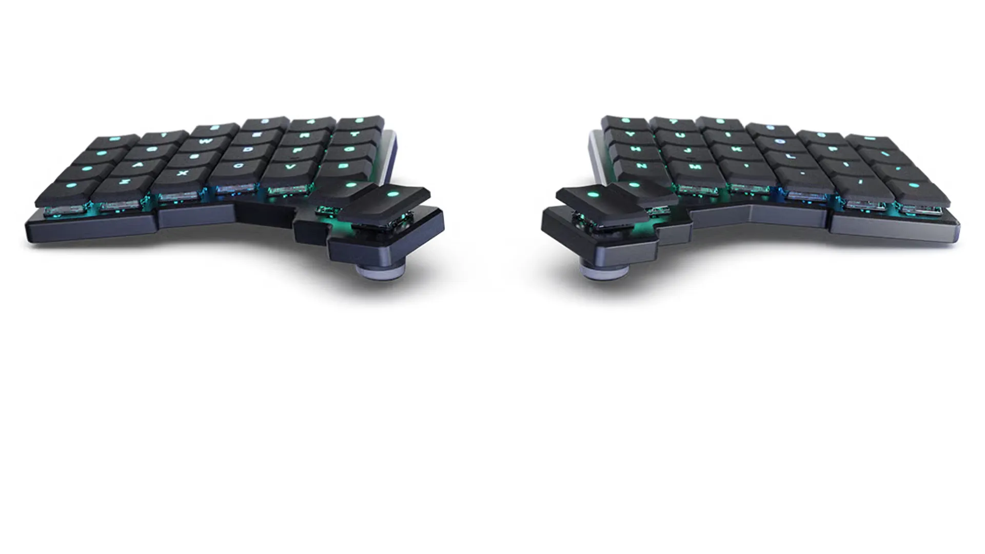 Две половины можно расположить так, как удобно именно вам — развести шире, повернуть под нужным углом или приподнять с помощью магнитных ножек. Колонночная раскладка уменьшает лишние движения пальцев, а отдельный блок под большие пальцы разгружает мизинцы и ускоряет набор.